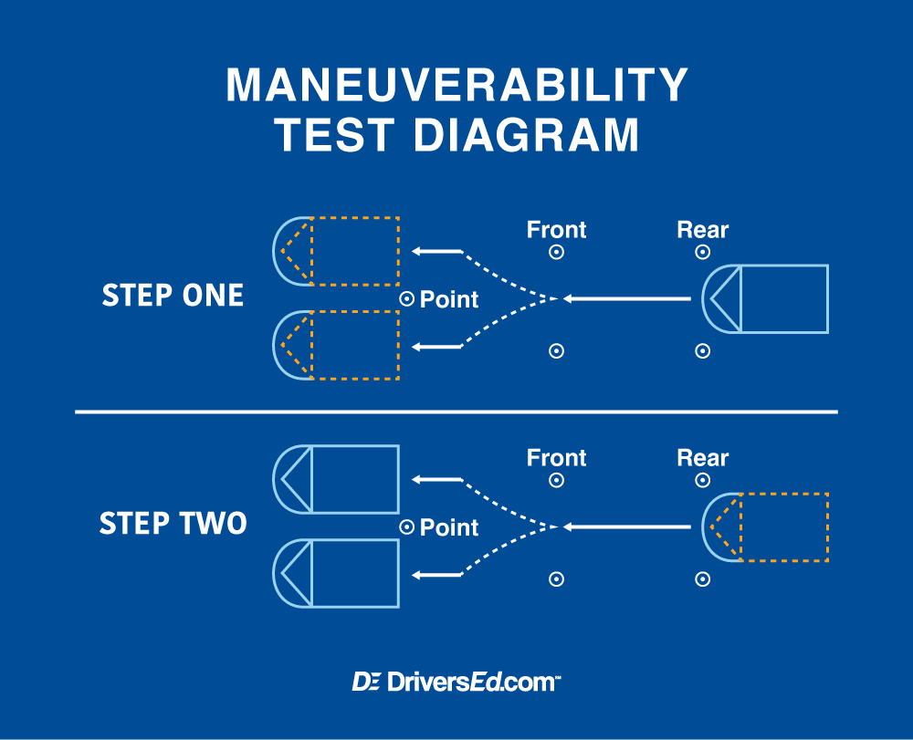 The maneuverability test is specifically to confirm you can control the vehicle well by asking you to complete a simple forward and reverse maneuver through markers (usually traffic cones) placed on a course.