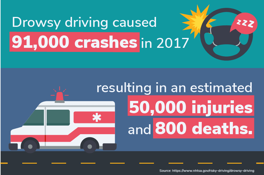 The National Highway Traffic Safety Administration estimated that drowsy driving caused 91,000 crashesDrowsy Driving Risky Driving in 2017, resulting in an estimated 50,000 people being injured and 800 deaths. Getting precise numbers on drowsy driving-related crashes is difficult, however, and the death toll may be even higher. According to the National Sleep FoundationDrowsy Driving Prevention, drowsy driving kills more than 6,400 Americans annually.