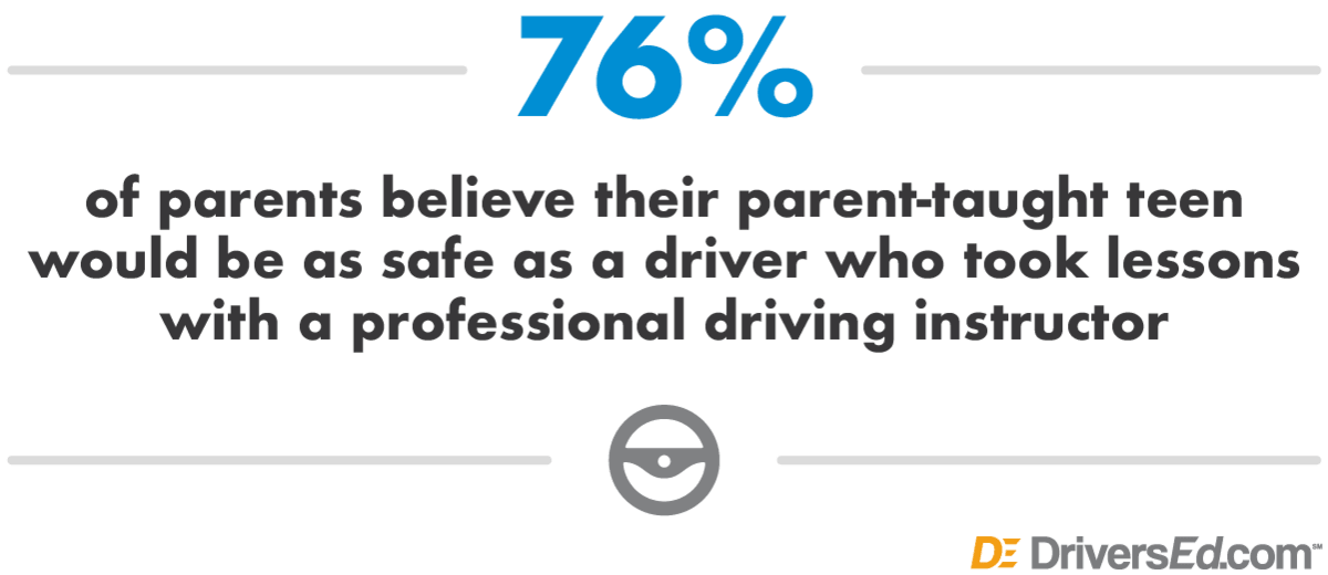 Many parents are happy to accept responsibility for their teen’s driving education. 76% of parents believe their parent-taught teen would be as safe as a driver who took lessons with a professional driving instructor. And parents appreciate the reduced cost, increased scheduling flexibility, and shorter turn-around time of these new parent-taught driver’s ed programs.