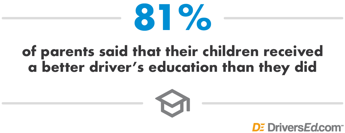 In a recent survey, 81% of parents said that their children received a better driver’s education than they did. For many parents, driver’s ed was taught as part of their public school education, and it was often taught by the gym teacher who had a free period.